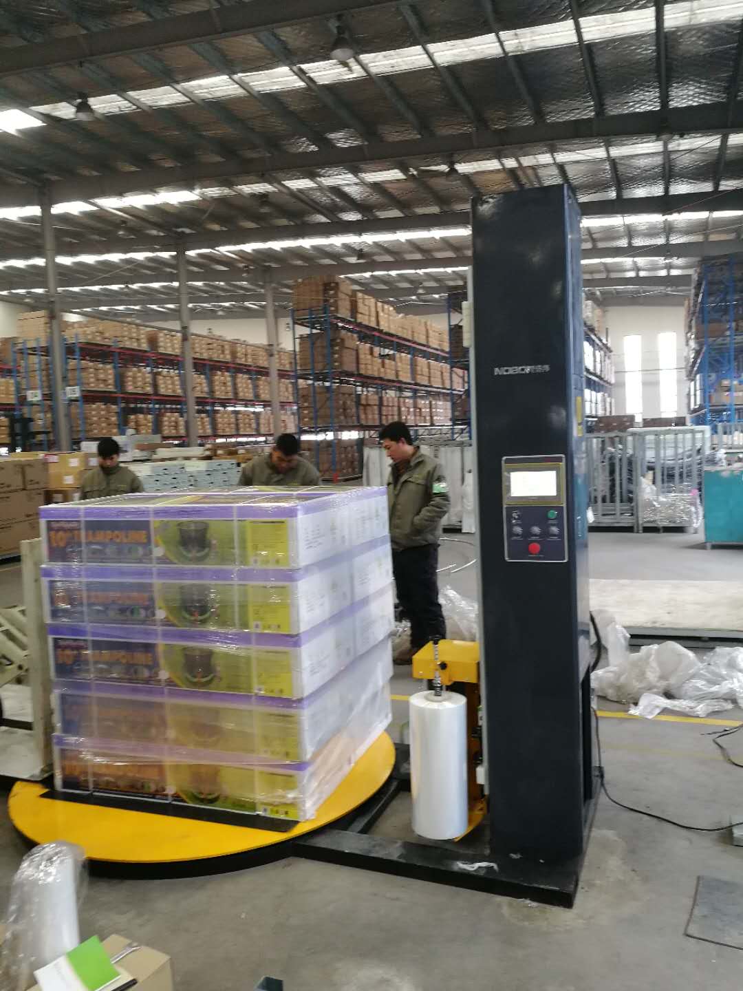 近日;山東大型某健身器材有限公司到我們公司考察后,選購一臺高品質的托盤纏繞機。并讓我們盡快交付,他們要進行貨物包裝進行出口。