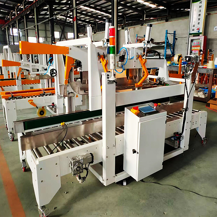 3、熱熔膠封箱功能。很多用戶會選用熱熔膠的方式封箱來取代膠帶封箱,或者二者兼而有之,這時,封箱機是需要定制的,機身會加長,同時還要加裝一些配合熱熔膠機使用的其他附件。